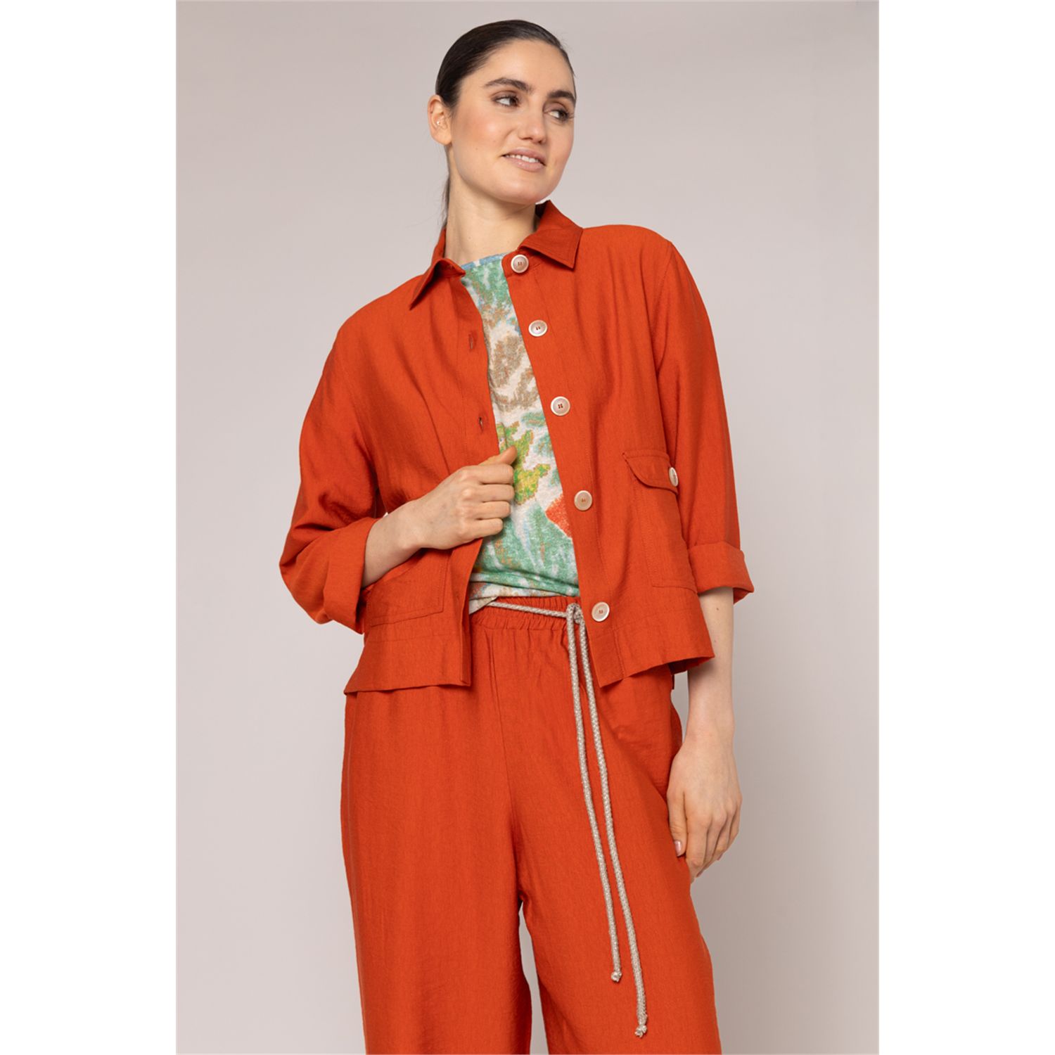 boxy loose-fitting jacket with pockets in rayon blend with textured effect