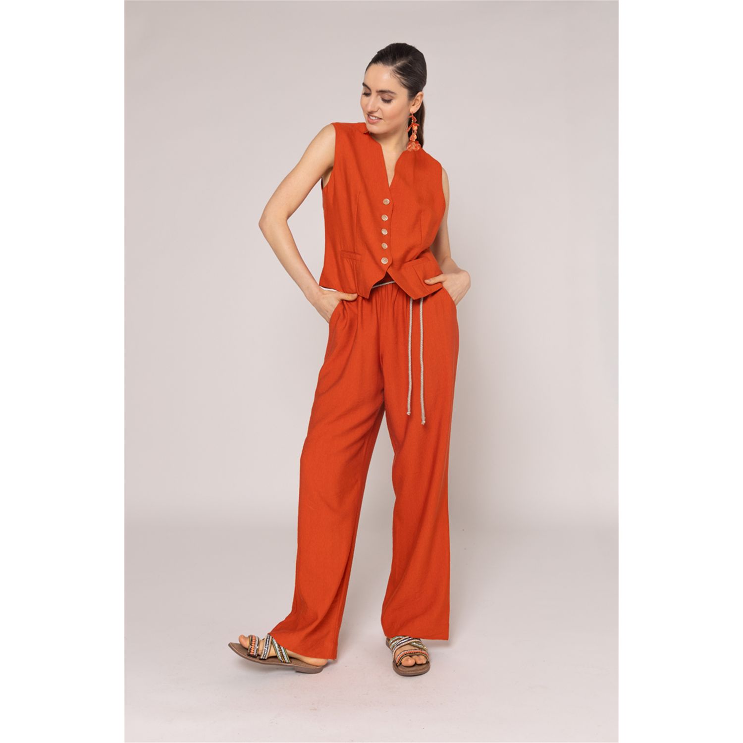 Gilet with O neck/V shape, 2 piped pockets, in textured rayon blend