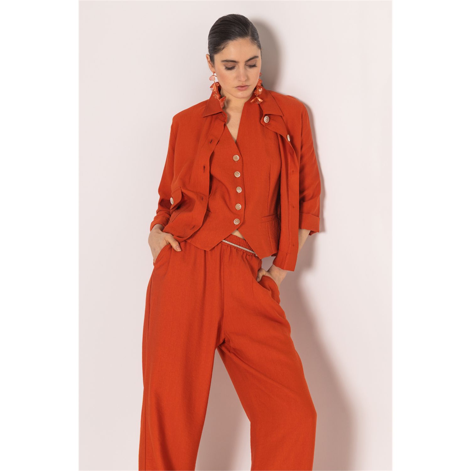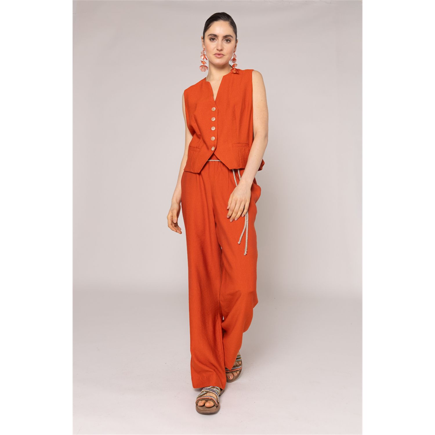 gilet with o neck/v shape, 2 piped pockets, in textured rayon blend