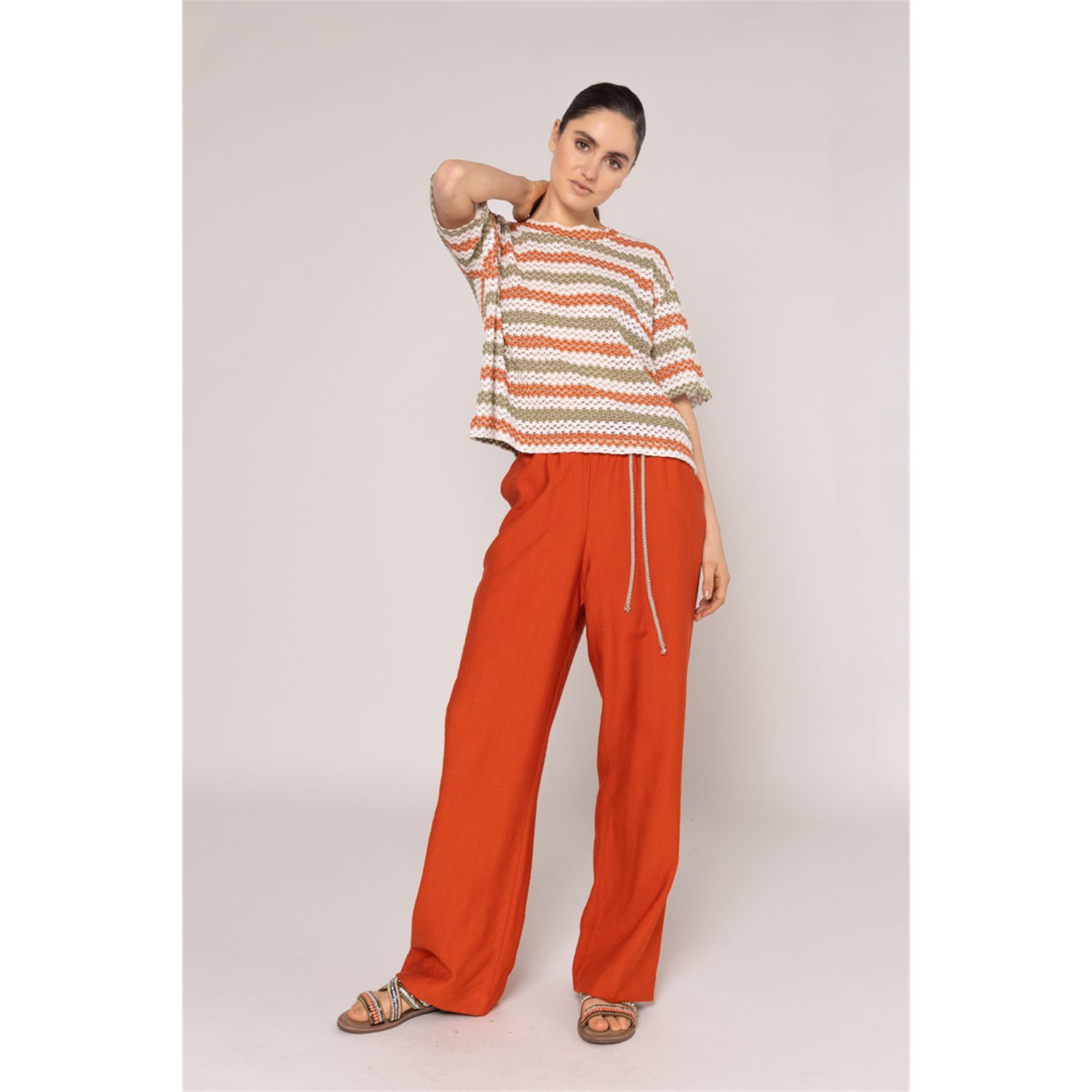 top in jersey jacquard, boxy model with short sleeves