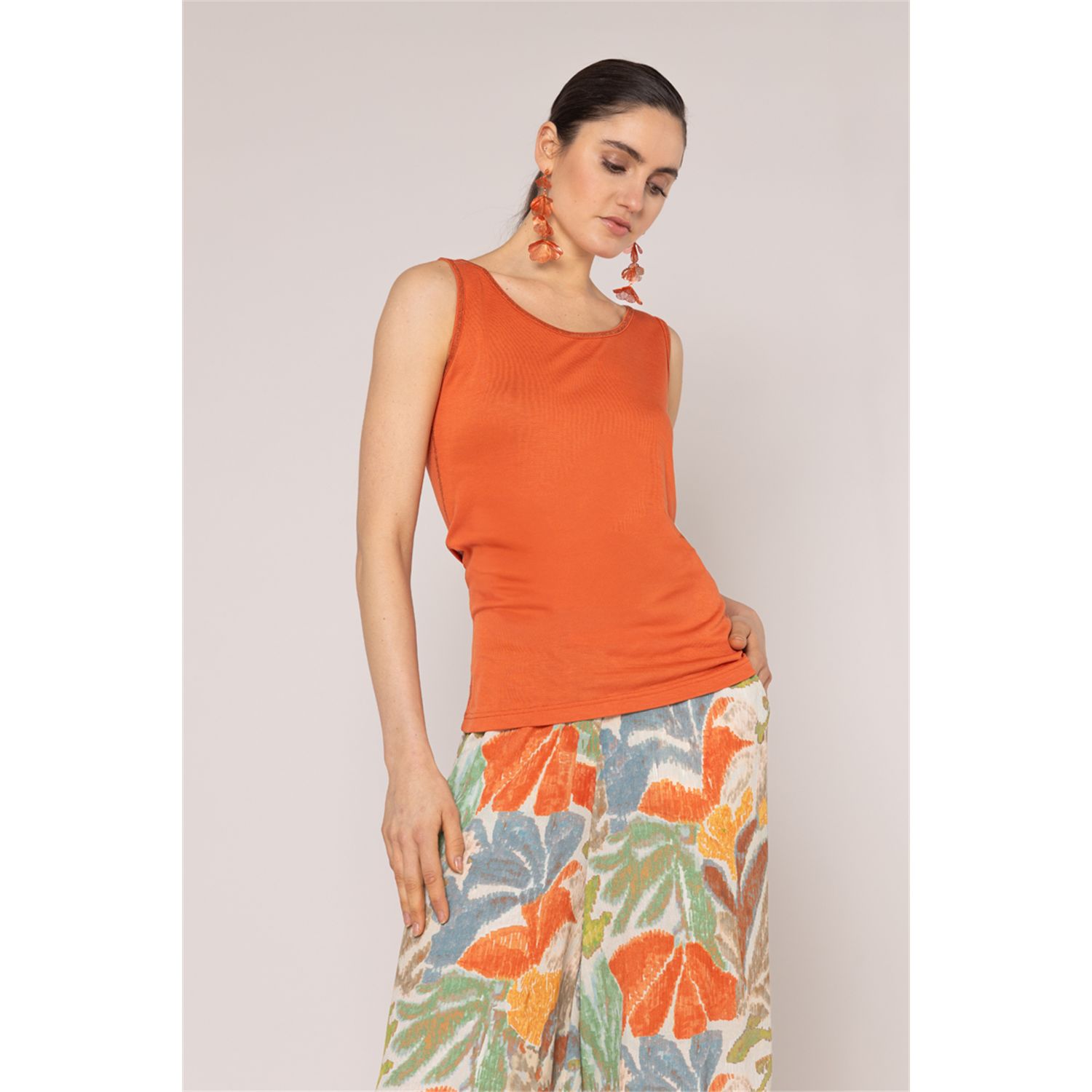 Luxury singlet / top in 100% viscose jersey with tone-on-tone lurex stitching