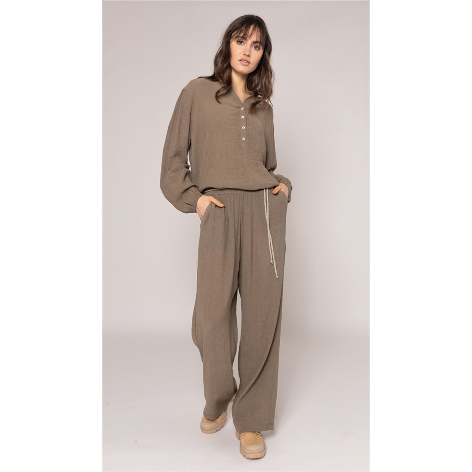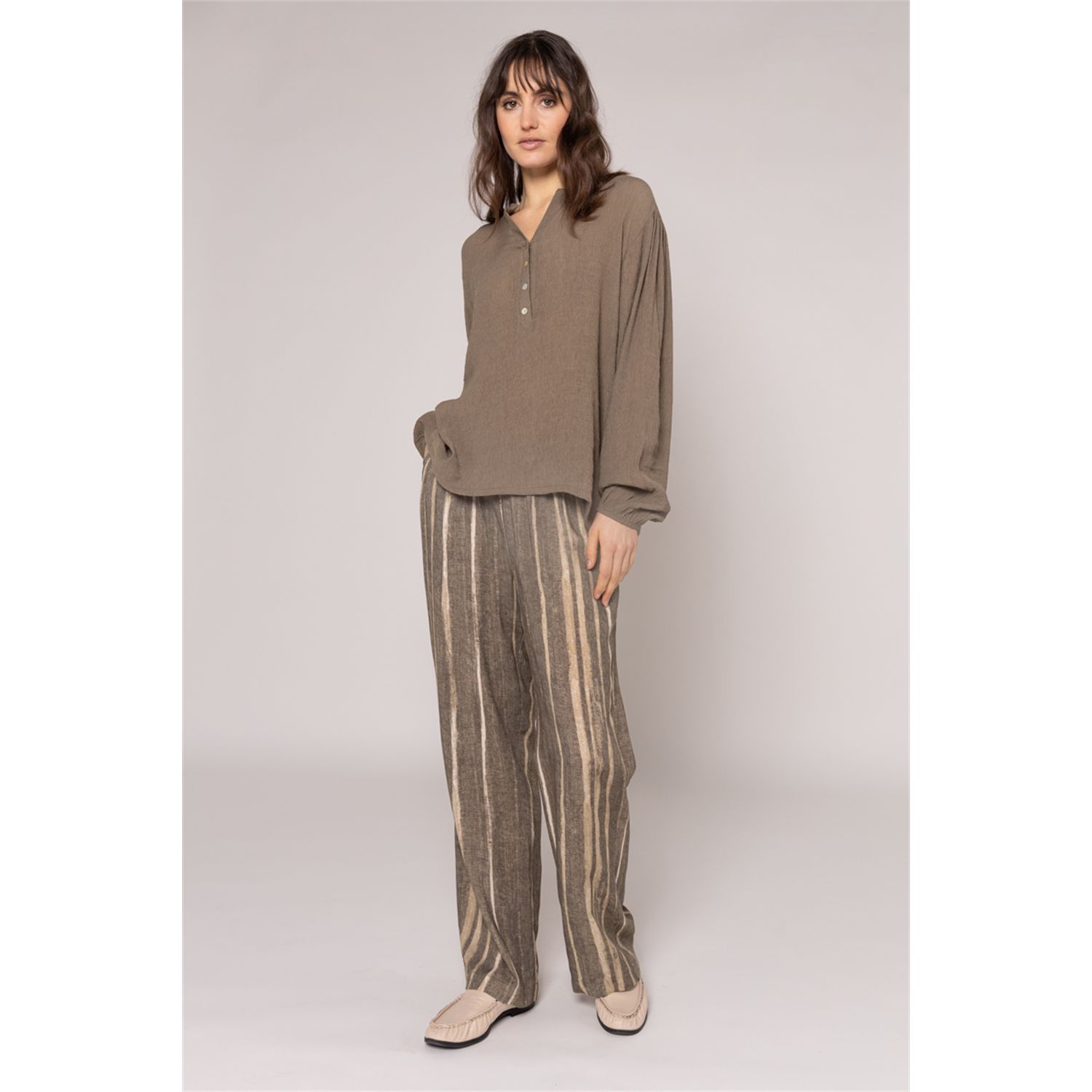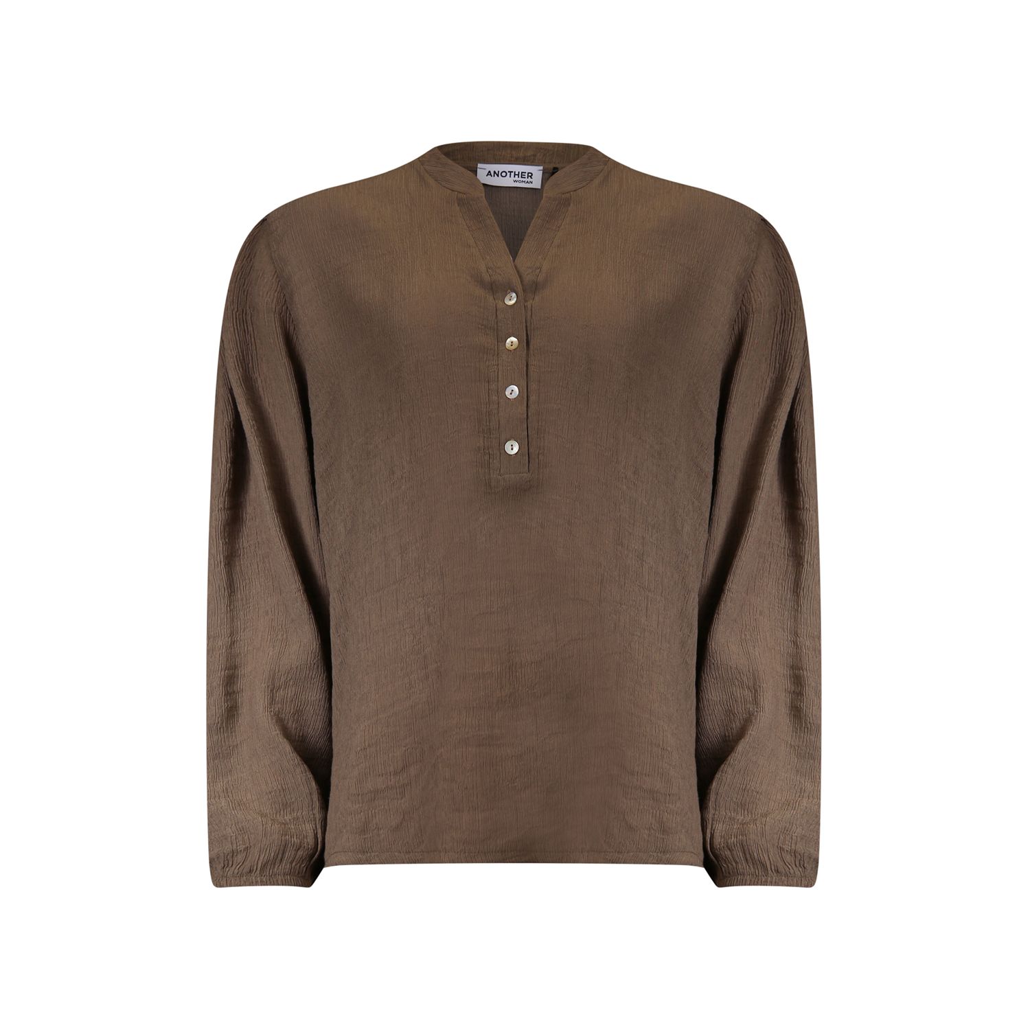 Ruimvallende blouse met standup kraag in crincle viscosemenging