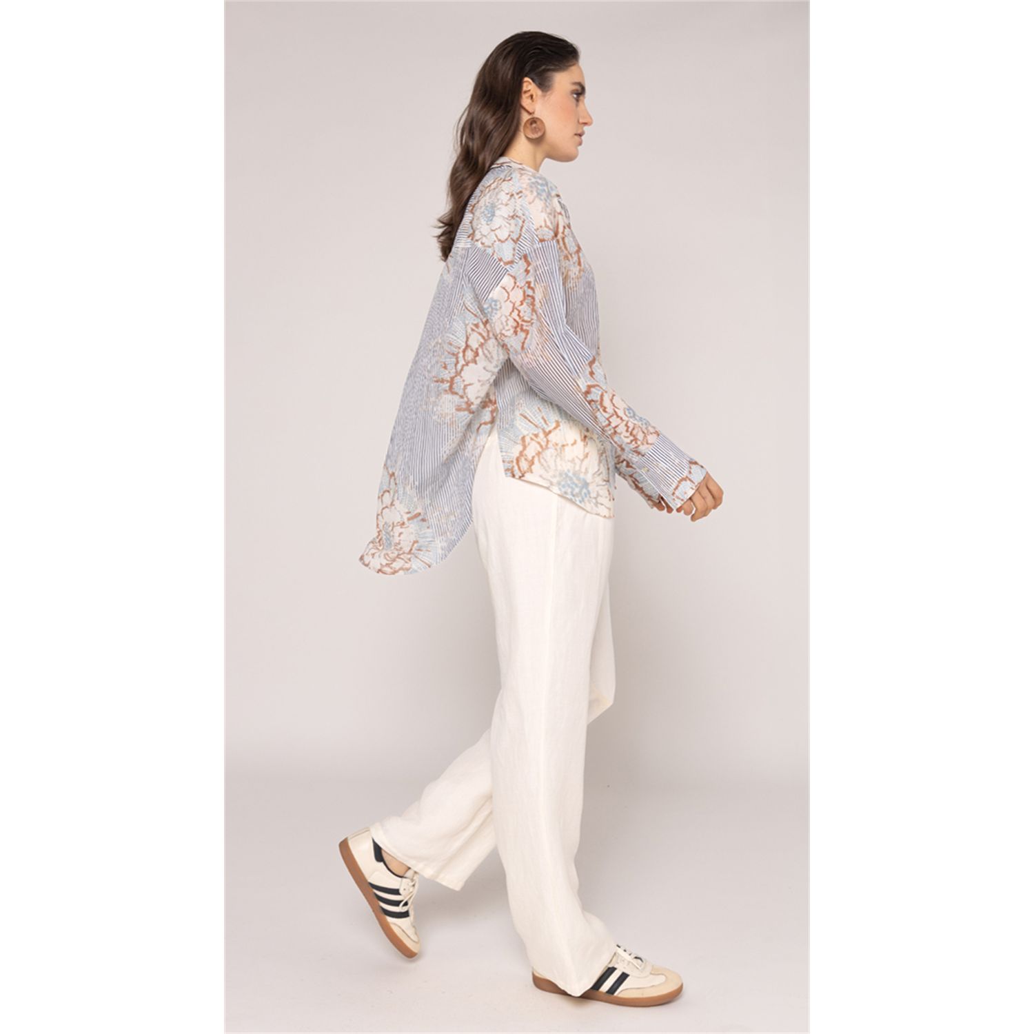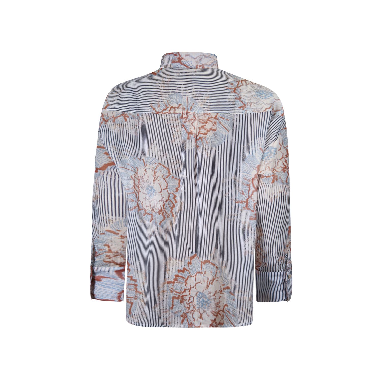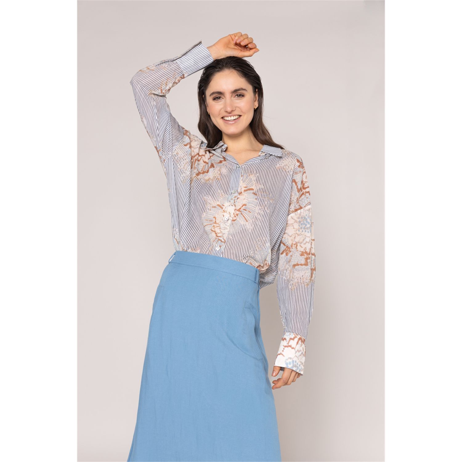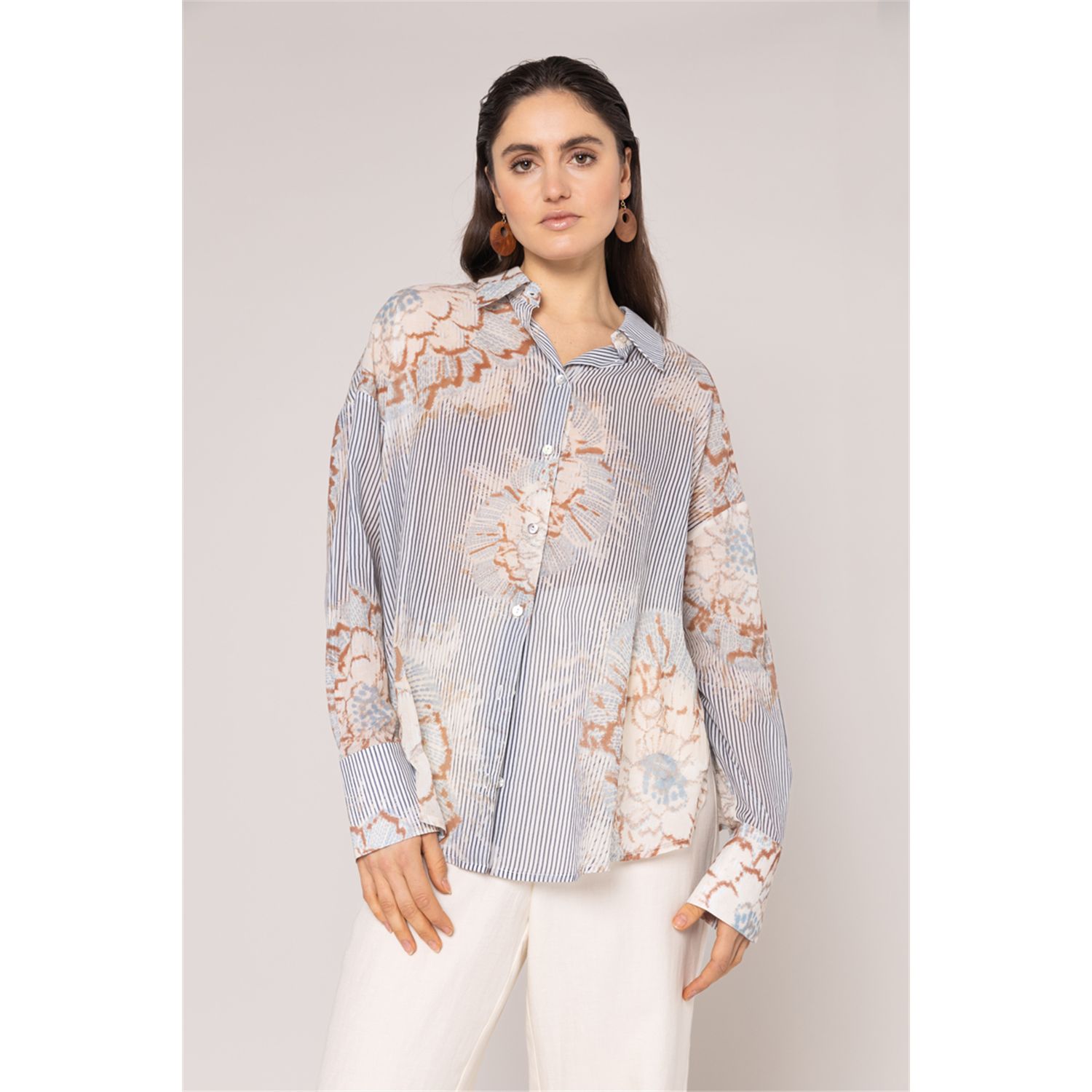 Oversized overhemdblouse in geprinte katoenen voile met parelmoerknoopjes