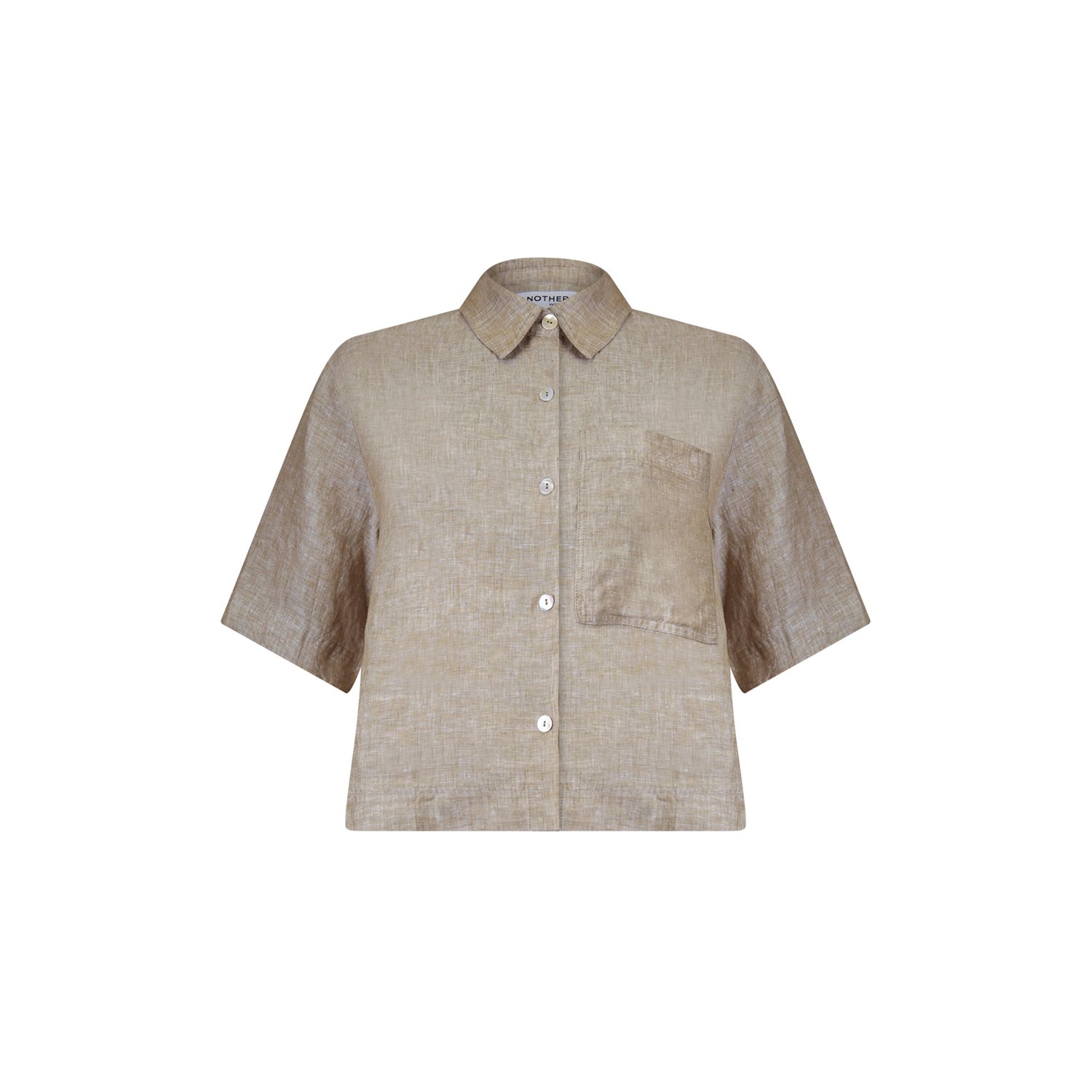 Boxy blouse in 100% fijn linnen, korte mouw en 1 borstzak