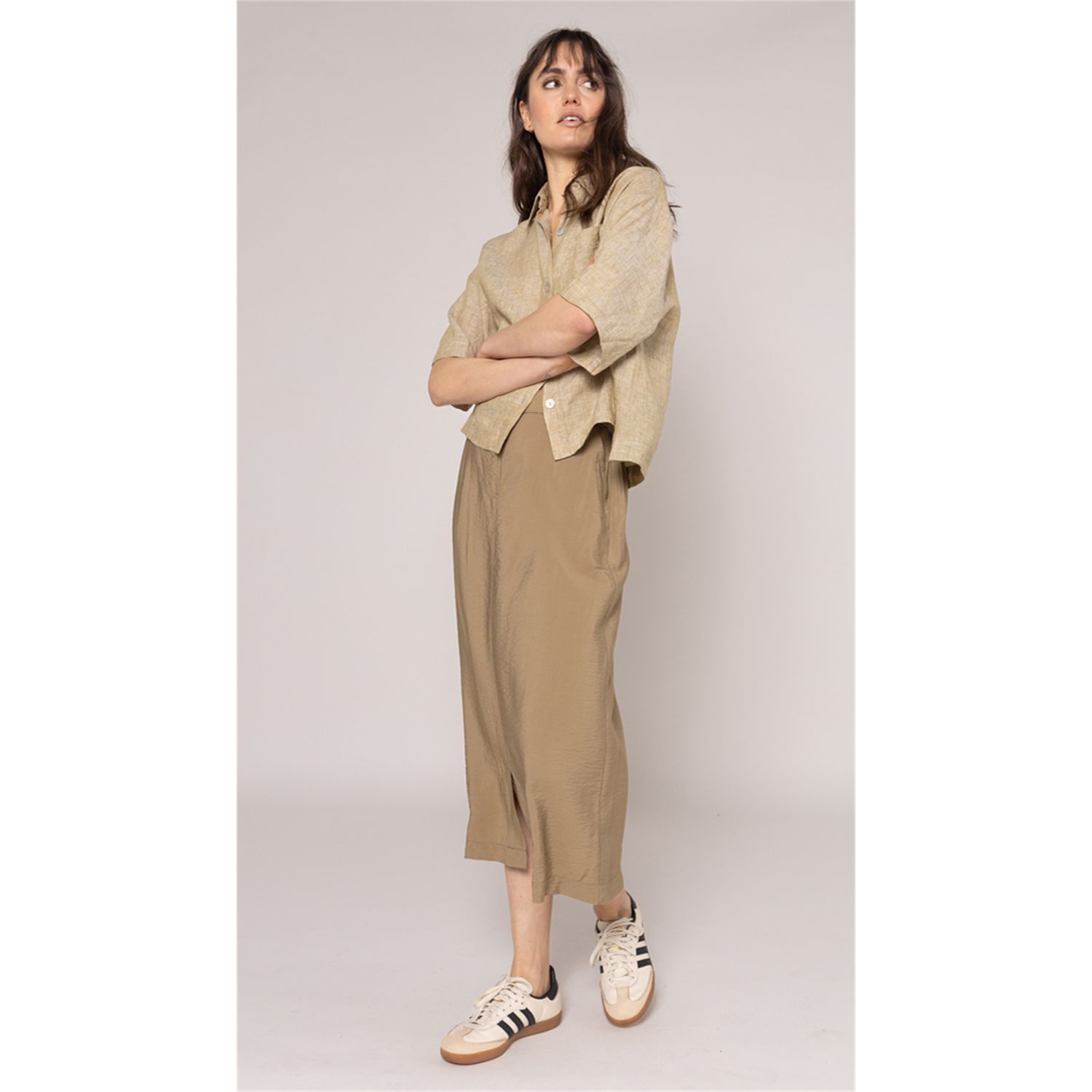 Kleur: Olijf Kleuromschrijving: Olive Lengte: 56+cm (bij maat 38, oplopend voor de grotere maten)