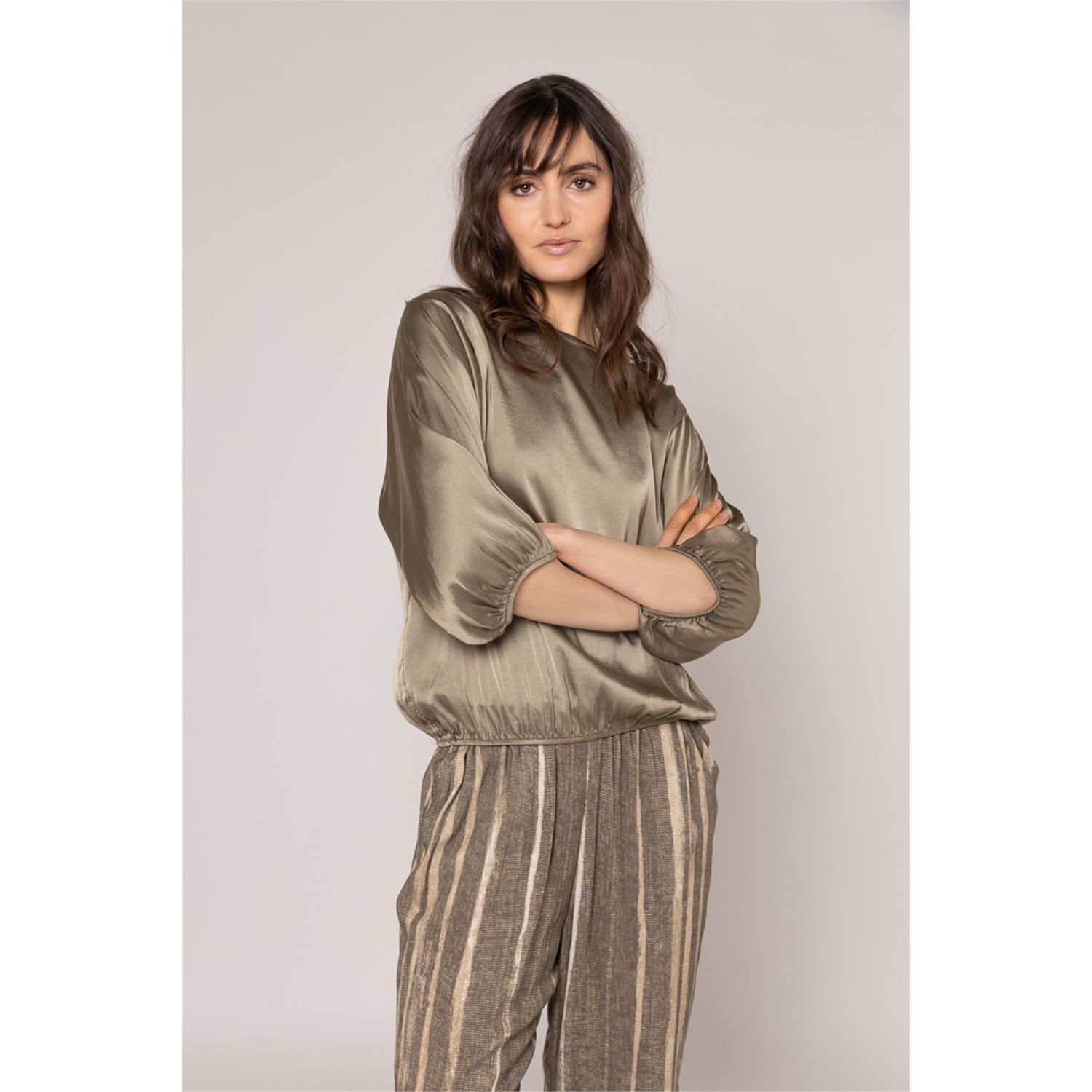 Luxe top in viscose satijn stretch, met elastische boorden, XL armhole & mouw