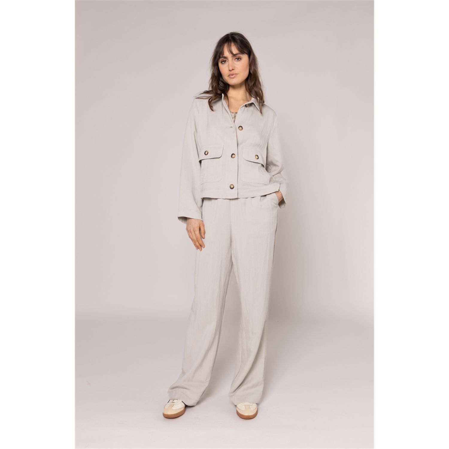 Ruimvallende pants in Tencel / viscose blend materiaal, sportieve zakdetails op achterpand