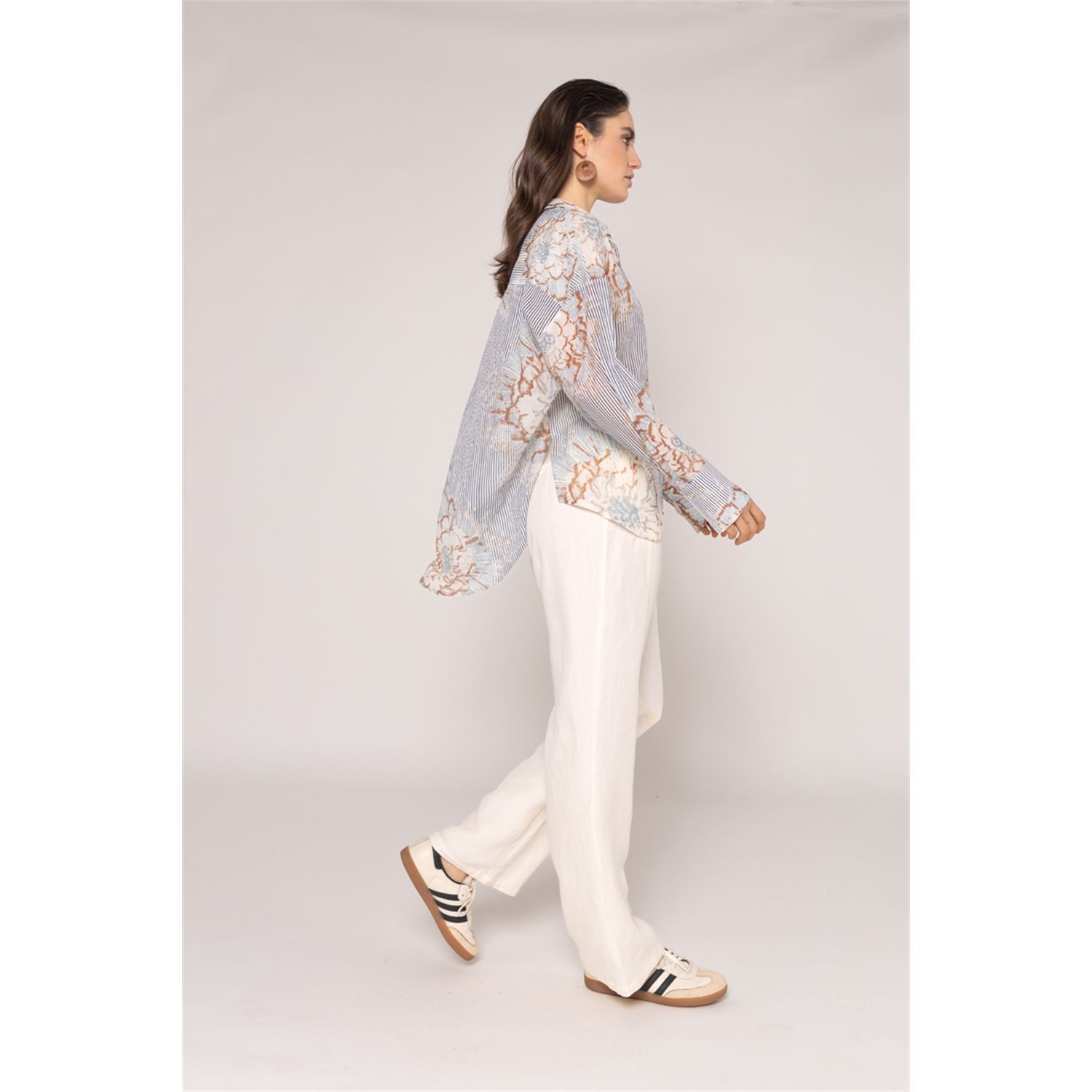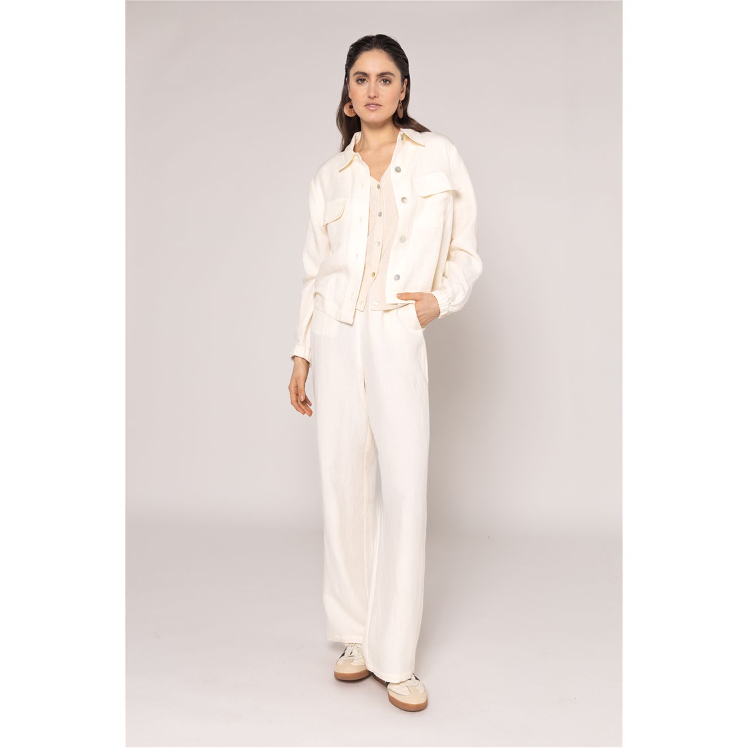 Ruimavallende pants met zakken en elastische tailleband achterzijde in viscose/linnen menging