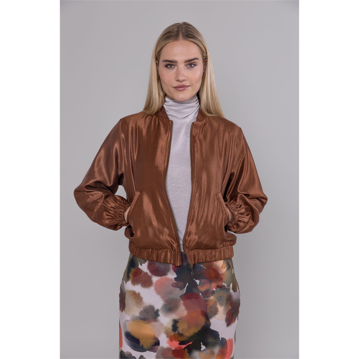 Satijnen bomberjack met 2 steekzakken en rits, in een rayonmenging.