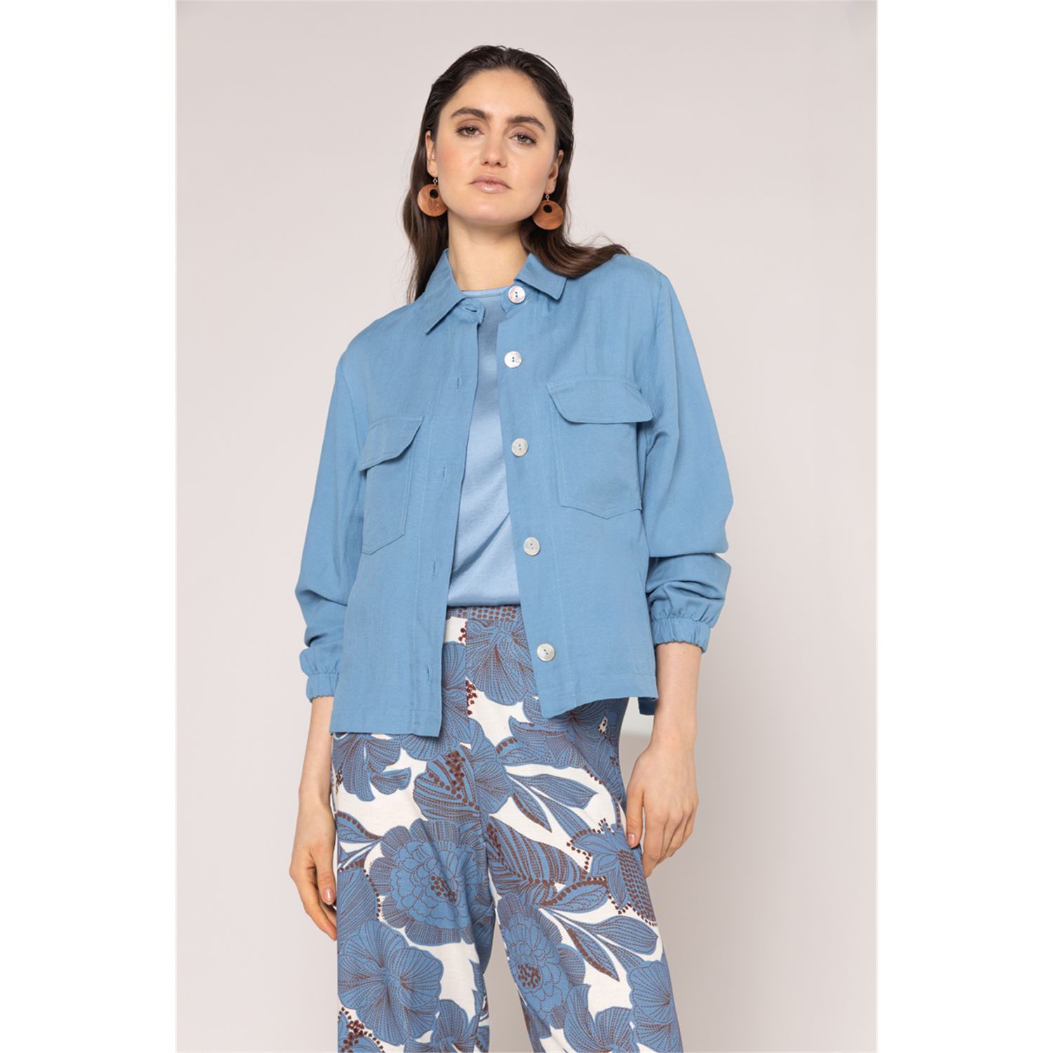 Sportieve blouson met zakken en verstelbare onderwijdte, polokraag, in viscose/linnen menging