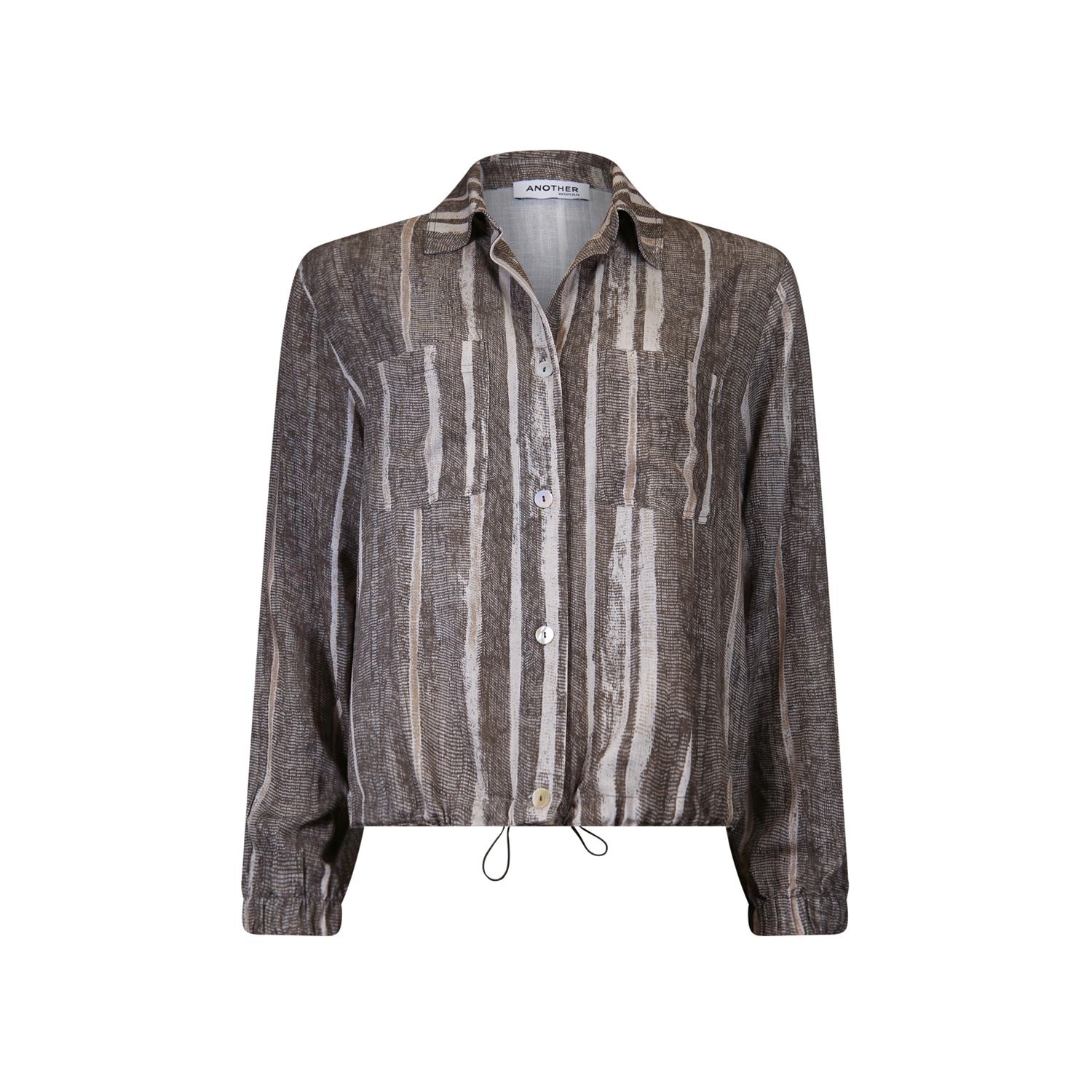 Ruimvallende blouson in natuurlijke print op soepele viscose met linnen-uitstraling