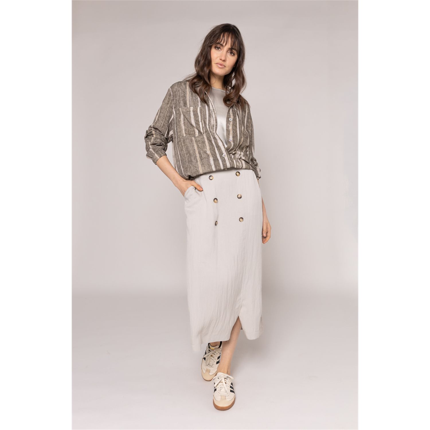 Kleur: Multicolor Kleuromschrijving: Olive handpaint stripe Lengte: 58+cm (bij maat 38, oplopend voor de grotere maten)