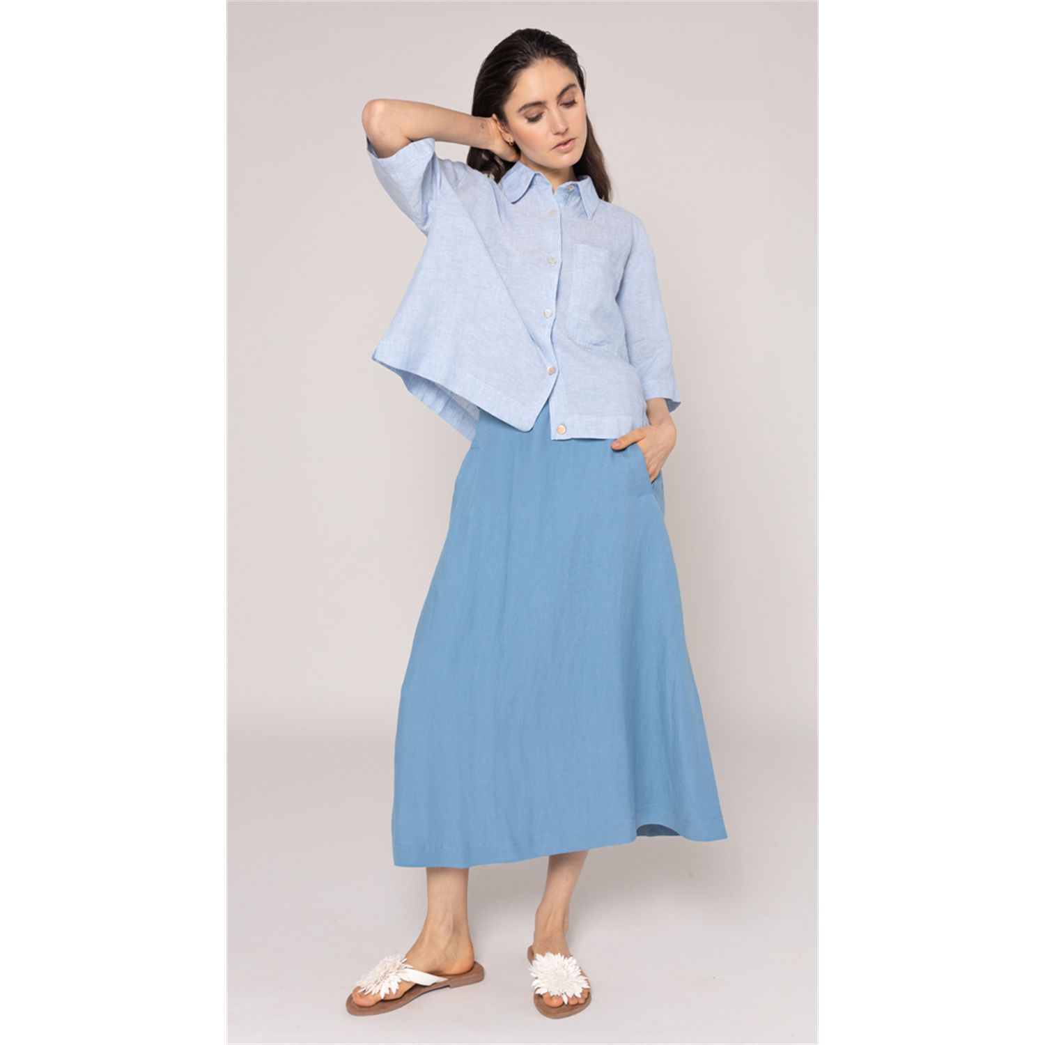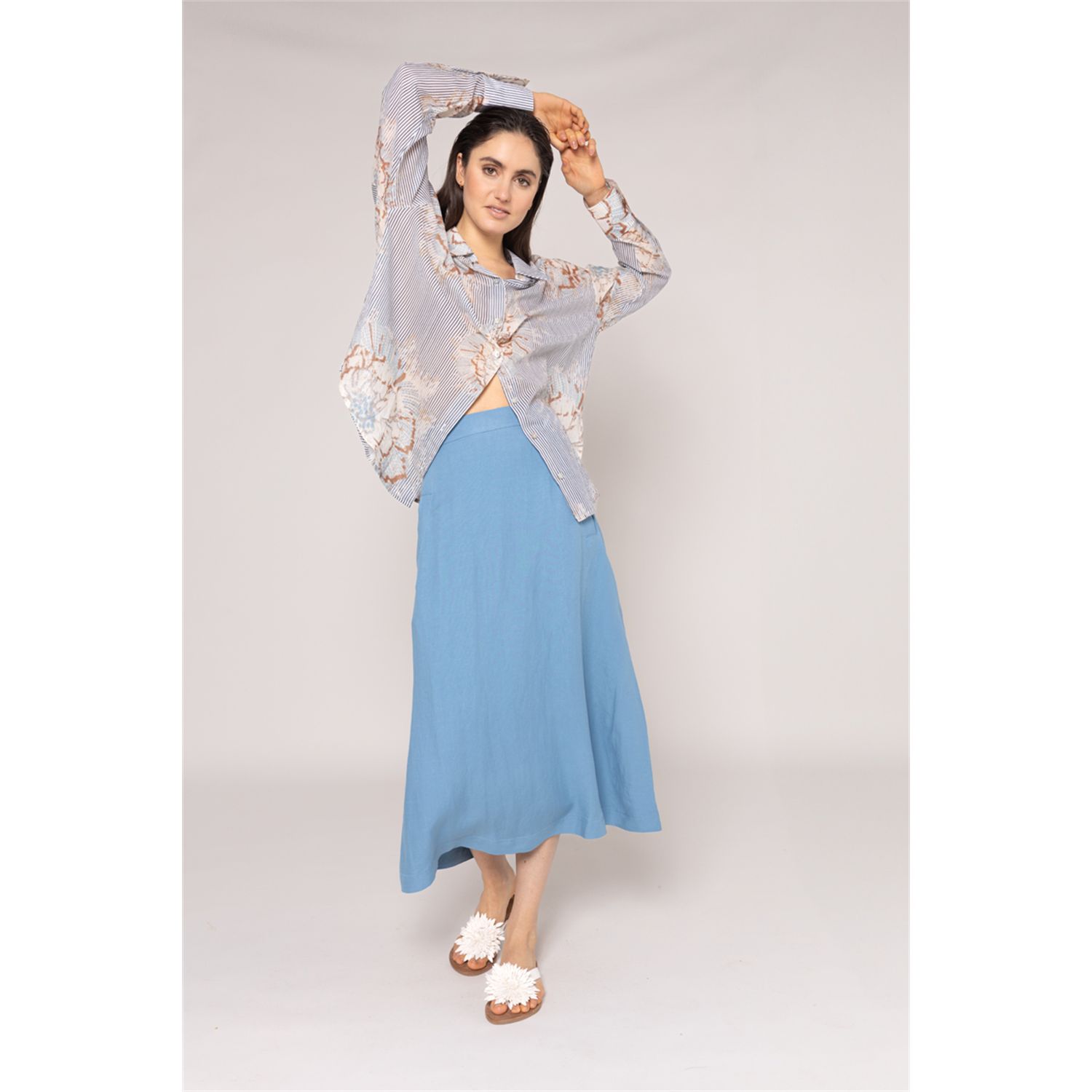 RuimavallendWijde rok met zakken en elastische tailleband achterzijde in viscose/linnen menging