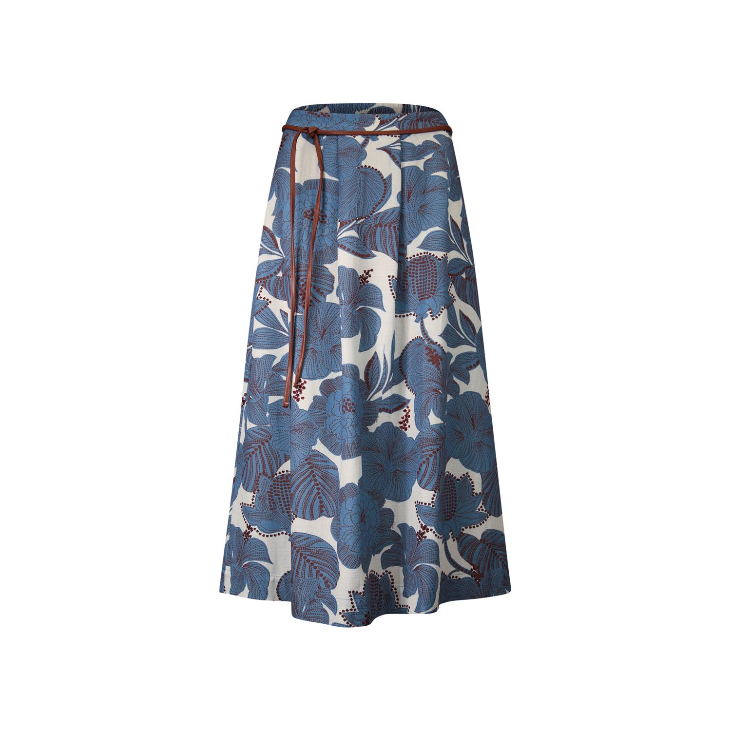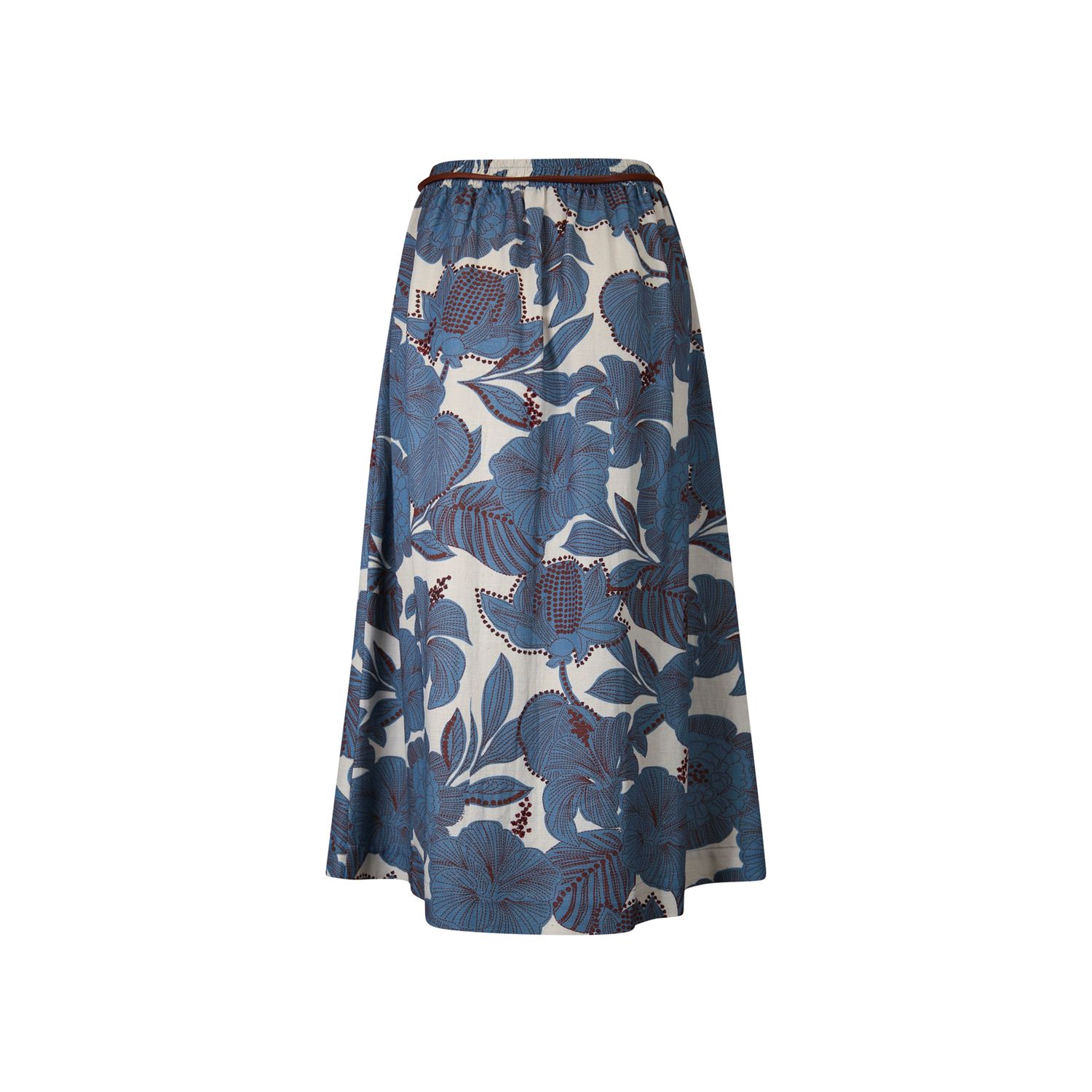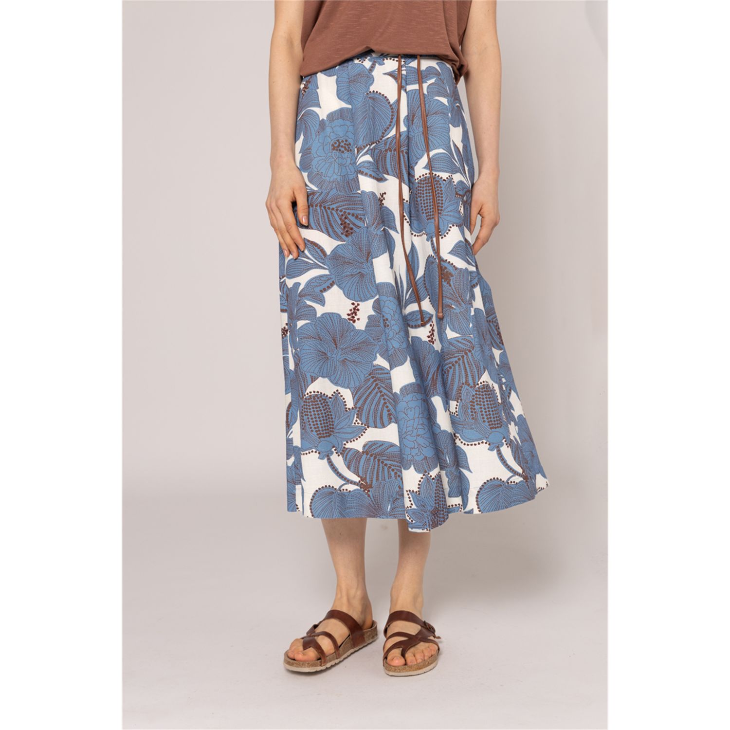 Ruimvallende wijde geprinte rok met elastische tailleband achter en zakken in Lenzing gecertificeerde eco viscose/katoen/linnen