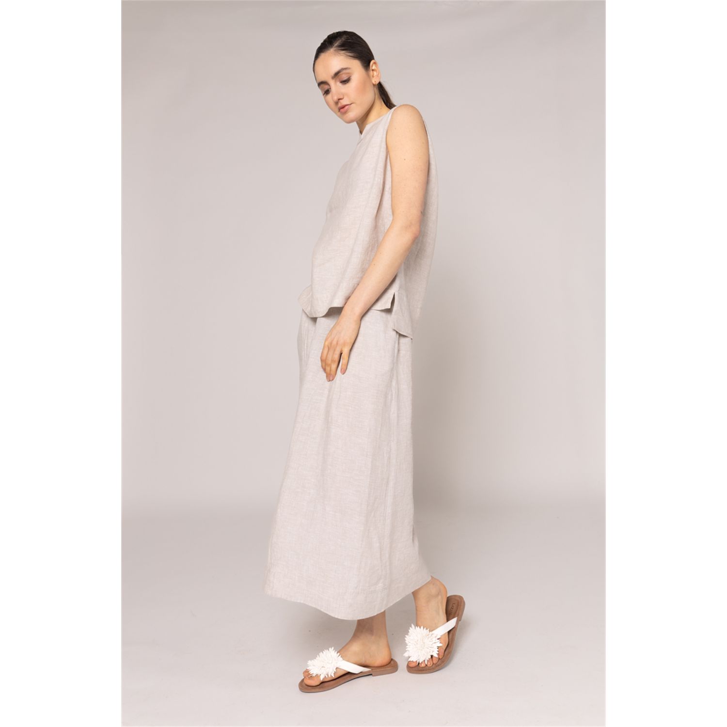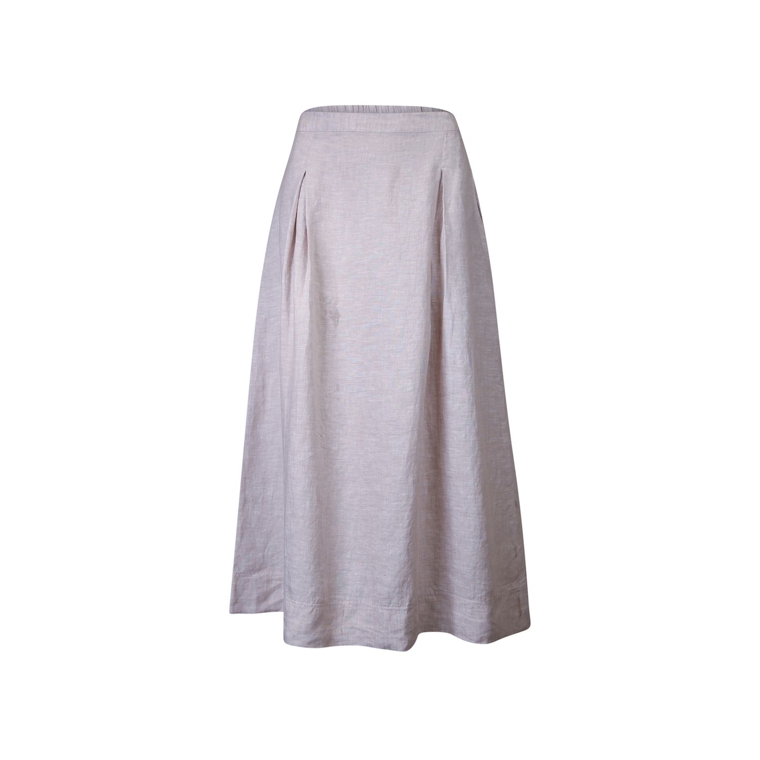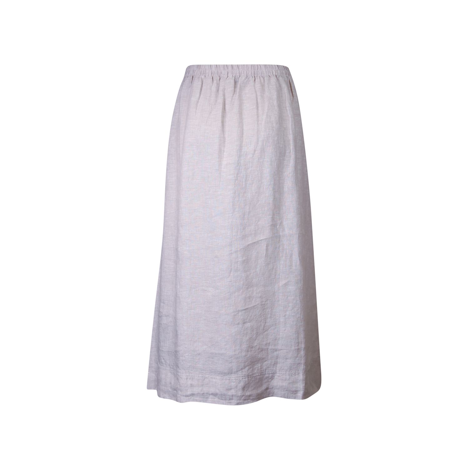 Wijdvallende rok in 100% fijn linnen, elastische tailleband achter, 2 steekzakken in de zijnaad