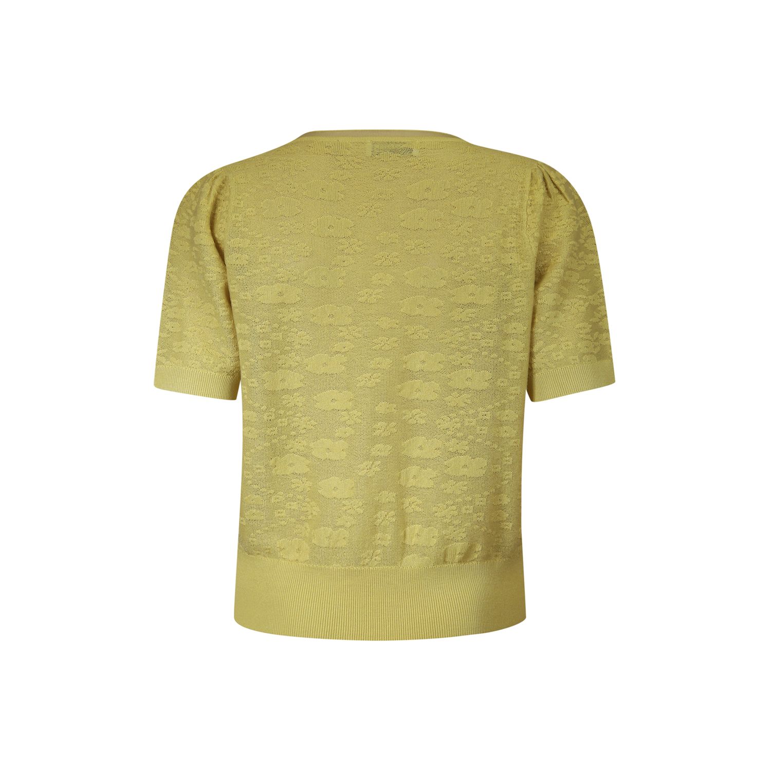 Fijn gebreid jacquard pullover met korte mouw en V halsdetail, in Lyocell menging