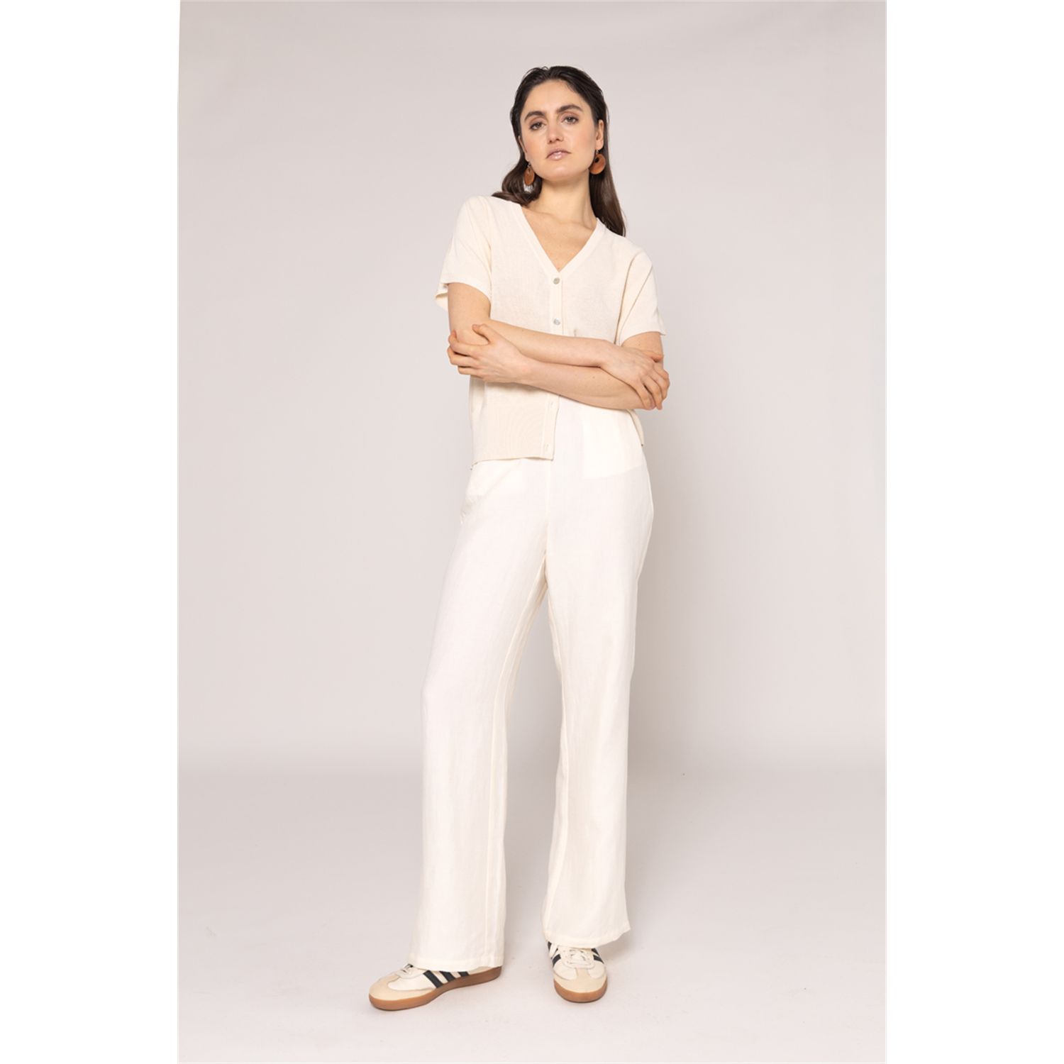 V-hals vestje/pullover, aangeknipte mouw, links gebreid in viscose/linnen/tencel blend