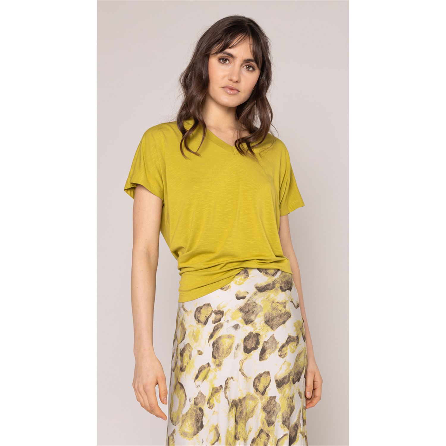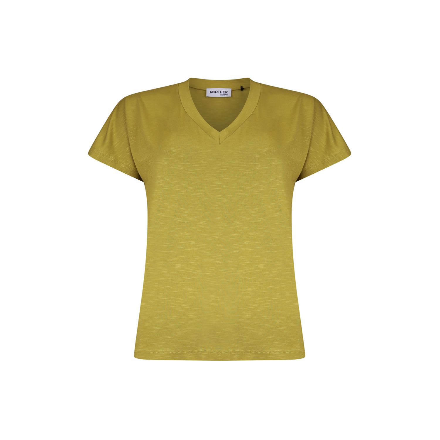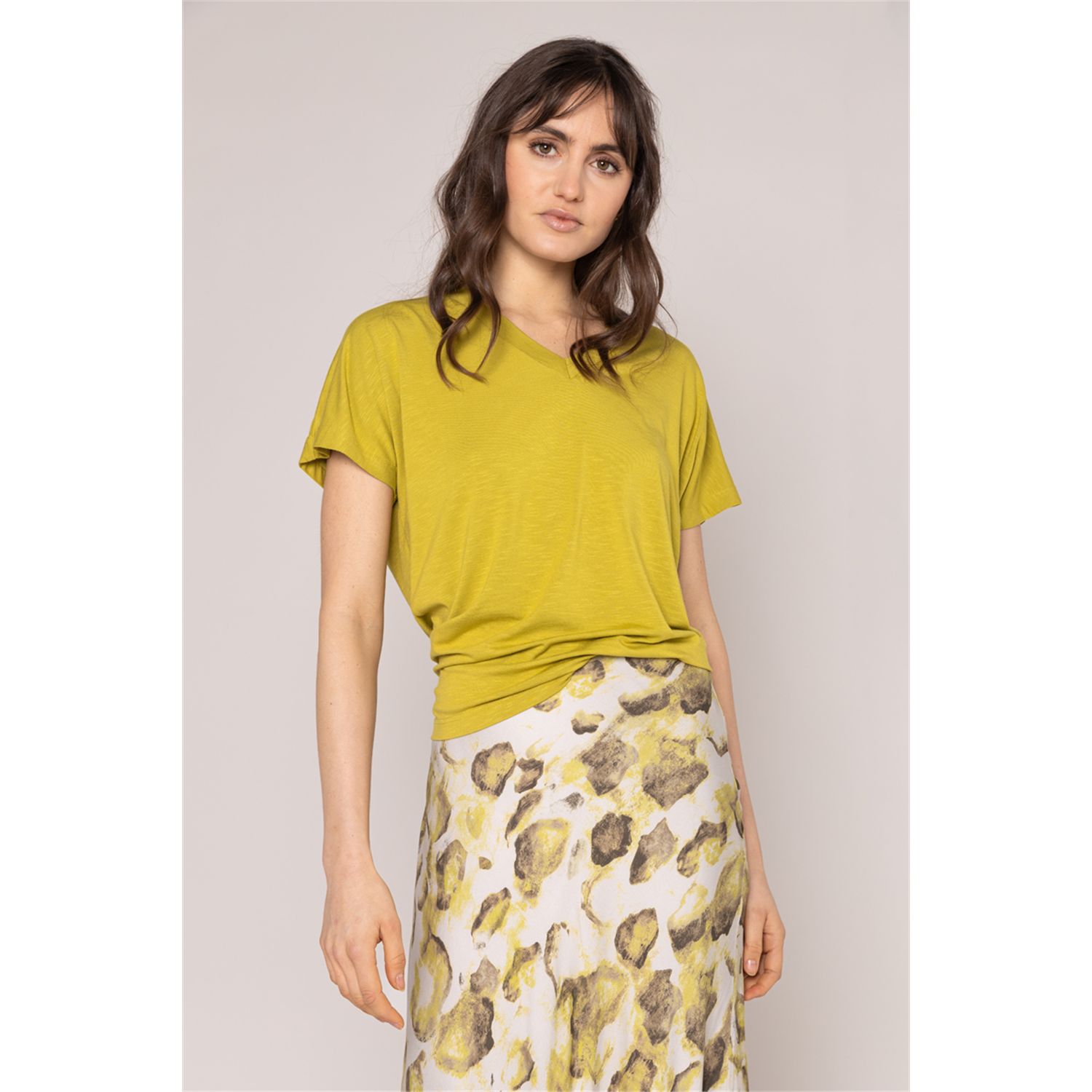 T-shirt V hals, korte aangeknipte mouw in viscose/elasthan slub jersey